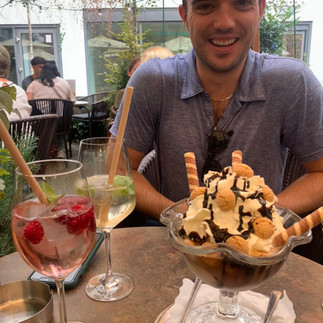 From there, we grabbed an ice cream sunday and a $12 bottle of water (we didn’t realize how much the water was until the check was brought.. yikes) which we enjoyed on a hidden patio area off the main strip. We then went to a farmers market and checked out a Munich eatily where I enjoyed a snack and aperol spritz while James completed a FaceTime interview (we figured it was time to start lining up opportunities for our return at the end of the month… ugh).